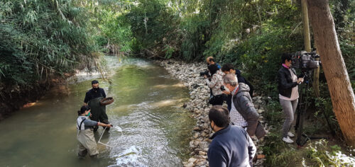 Rescate de peces con pesca eléctrica en el río Oja (La Rioja)