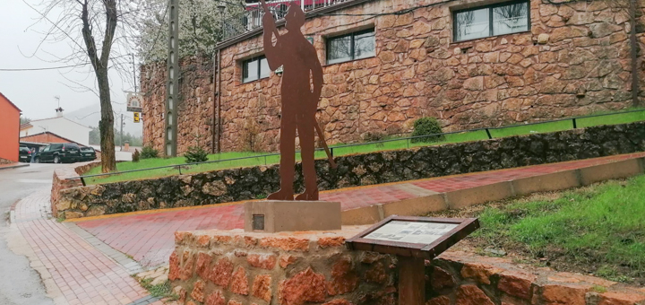 El atril se ha situado junto a la escultura de un ganchero ya presente en Uña. ¡No te lo pierdas!