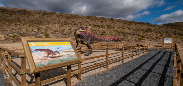 Se trata de la reproducción de un espinosáurido a tamaño real que ilustra a uno de los posibles productores de las grandes icnitas terópodas registradas en este yacimiento riojano formado durante el Cretácico Inferior. Este misterioso dinosaurio de espinas prominentes se encuentra acompañado de varias mesas interpretativas que mostraran al visitante algunos de sus detalles más característicos junto a información adicional de la rica oferta turística del municipio.
